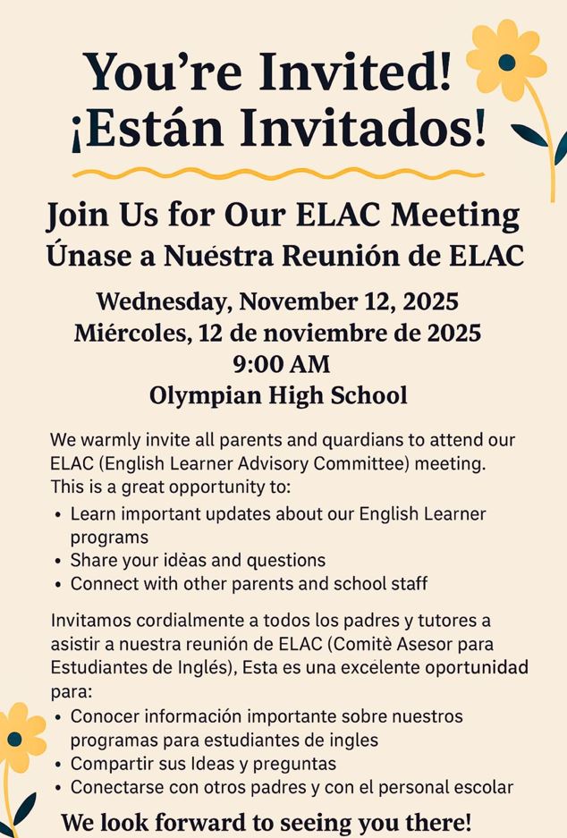 Reminder for Eagle Parents: ELAC Meeting 11/12 at 9:00AM